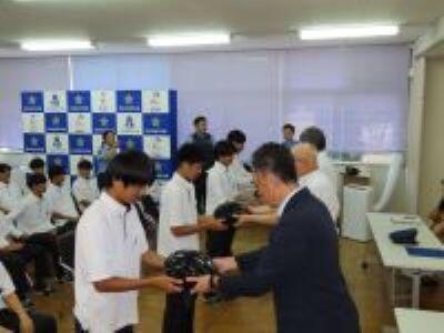 本校生徒を代表して、サッカー部とバドミントン部の生徒に自転車用ヘルメットと任命書が授与されました。自転車での交通事故は、ヘルメット着用により死亡率や重篤な頭部への傷害が大幅に軽減するといわれています。自転車に乗る際はヘルメットを正しく着用し、自転車は軽車両であるという自覚を持ち、交通ルールを守って安全運転を心掛けて欲しいです。なお、任命式の様子は、7月23日の「下野新聞』朝刊にも掲載されました。