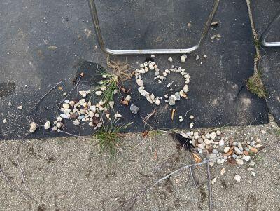 写真下は副顧問の先生のお子様が、試合中にベンチに作ってくれたオブジェです。