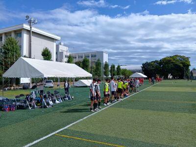 あいにくの秋雨で、気温も低い中での試合となりました。試合はチームプレイに徹した素晴らしい躍動した姿を披露出来たかと思います。負傷者が続出している苦しい状況ながらも、心をひとつにしてチーム全員がハードワーク出来たかと思います。また、本校は運営担当となっていて、マネージャーが大会プログラム販売を行いました。