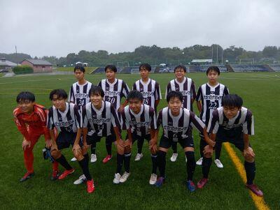 第6節を栃木県立那須拓陽高等学校と対戦しました。雨が降る中、拮抗した試合となりました。前半に失点し、苦しい展開となりました。しかし、後半にMF髙根澤が同点シュートを決めて追いつき、終了間際のMF大金のシュートで逆転することが出来ました。試合内容としては相手チームの方が素晴らしく、まだまだ改善すべきことが多く課題が残りました。今回も進路関係やケガで3年生の多くが不在の苦しい事情もあり、DF相馬(前所属:黒磯北中学校)・DF有賀(前所属:厚崎中学校)の2人が初先発となりました。全員がハードワークしての勝利ですが、3年生のMF津守とDF菊地の献身的なプレーが要(かなめ)となっていました。また、DF阿見とGK森の守備は貢献度抜群でした。