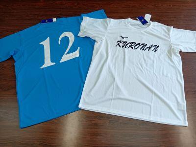 サッカー部保護者用にチーム応援Tシャツを作成しました。胸には選手のユニフォームと同じ「KURONAN」のロゴが、背中には選手と同じ書体で「12」番の背番号がプリントされています。選手・マネージャー・スタッフ・保護者が心をひとつにして活動して行きたいと思います。