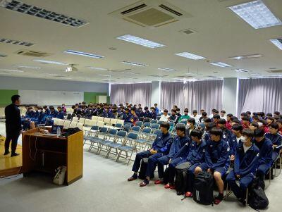本校サッカー部1年生は、4級審判員の資格取得に向けた講習会で多くのことを学びました。前半は校舎内の視聴覚室にて北部支部審判委員長・鈴木先生(さくら清修高校)から講義形式で知識を学びました。後半は雨天のため体育館に移動して、講師の先生方から実技形式で実際に体験することが出来ました。参加した北部地区の高校生(1年生)は、とても有意義な講習会となりました。今回、会場を御提供頂いた矢板高校の皆様の「おもてなし」が素晴らしく、円滑に講習会が運営出来ました。