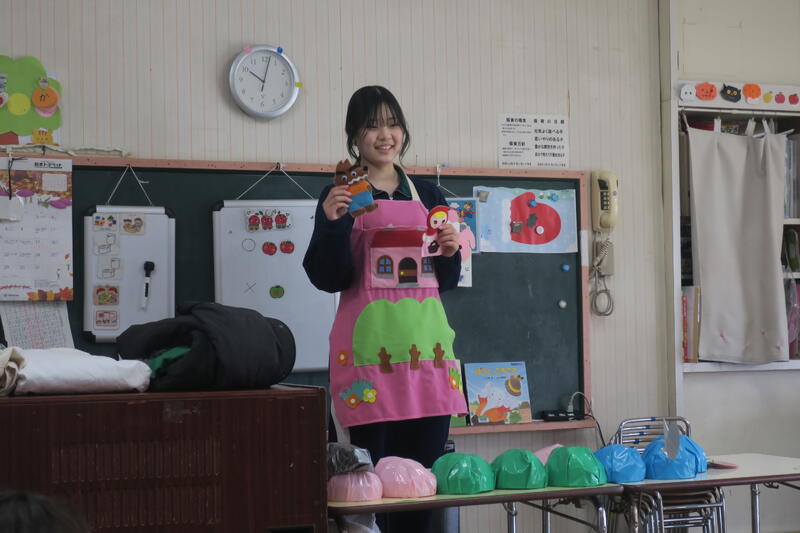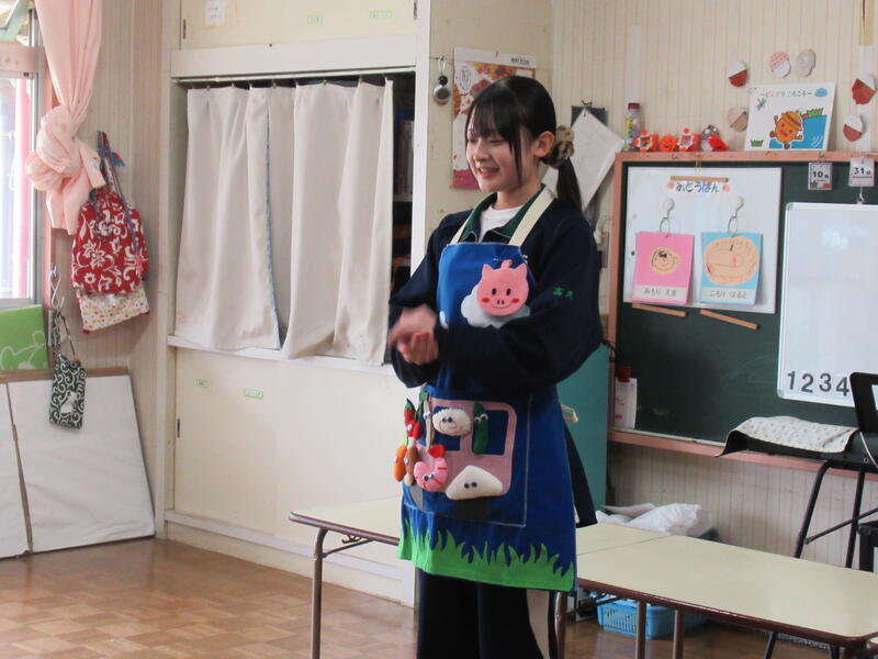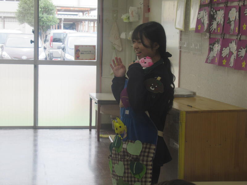 10月31日(金)に、3年生の保育実践選択者の16名がさきたま保育園に実習に行きました。授業内で半年かけて作ったエプロンシアターを、実際に園児の前で演じました。その後は園庭で思いっきり遊び、充実したひとときを過ごすことができました。選択者の中には保育士を目指す生徒が多いので、ぜひこの貴重な経験を将来に生 かしてもらいたいです。