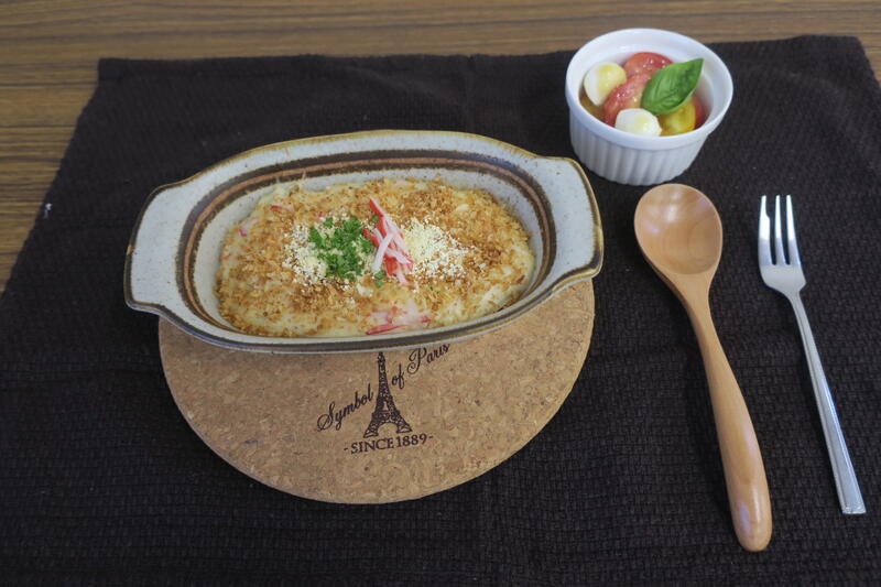 料理名は「アツアツ サクサク スコップカニクリームコロッケ ~カプレーゼを添えて~」