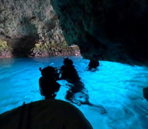 2日目は、マリン体験、湖水鑑賞船体験、素焼きシーサー色付け体験の3つに分かれての沖縄体験学習、美ら海水族館見学でした。