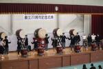 また、午後は世界で活躍する太鼓奏者、上田秀一郎氏、そして益子の和太鼓グループ、天人疾風の会をお招きし、”上田秀一郎 with 天人疾風の会”による記念講演会が開催され、式典を彩りました。さらにワークショップでは、生徒がステージに上がり、益子芳星の創立20年を記念したオリジナル楽曲の演奏に臨みました。