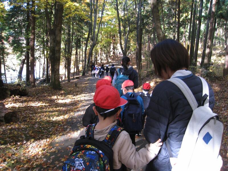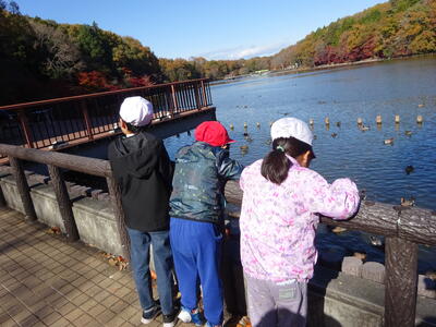 井頭公園を散策し、秋の自然に触れながら活動しました。園内では自動販売機で飲み物を購入したり、池で鯉のエサやりをしたりなどの体験を楽しみました。イチョウや紅葉がたいへん美しく、児童たちは興味深く見つめていました。