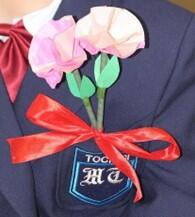 2・3年生は心を込めて作った花を、「これから仲良くしてください。」「入学おめでとう。」と言葉を添えてプレゼント。