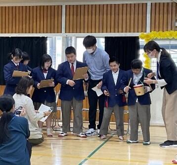2月6日(木)中学部2年『立志のつどい』が実施されました。11月より、アルバム制作や発表練習など生徒たちが準備を重ね、作り上げてきました。当日は保護者の皆様をお招きして、一人ずつ「将来の夢」「家族へのメッセージ」を発表し、手作りの花束を手渡しました。そして、これまでにお世話になった方々への感謝の気持ちを込めて「世界が一つになるまで」を合唱しました。一人の大人として成長していくスタートラインに立ったことを祝うとても温かな式典となりました。