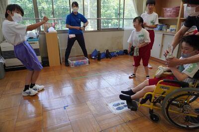 7月2日(水)、七井中学校との学校間交流があり、自己紹介やボッチャをして交流しました。