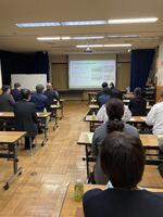 今回は講師に、高齢者介護施設を運営する株式会社オガワから太田様をお招きし、学校概要説明、授業見学、講話の流れで行いました。