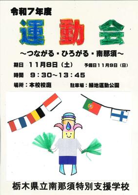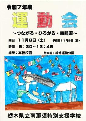 ・ちょうど1か月後に開催される運動会ポスターが出来上がりました。小学部、中学部、高等部各1名の児童生徒の皆さんから選ばれた作品が載っています。