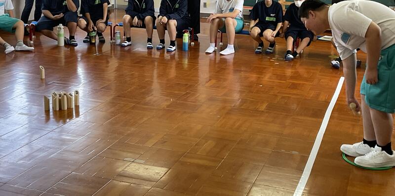 時間が経つと少しずつ緊張がほぐれて、レクリエーションでは【ボッチャ】や【モルック】をしました。チームごとに作戦を考えたり、南那須中学校の生徒からアド