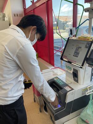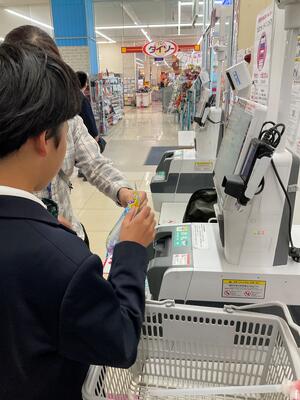 セルフレジの使い方を先生と一緒に確認しながら体験したり