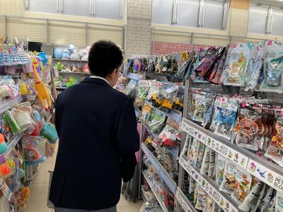 10月14日から20日までの5日間、中学部では作業実習に取り組みました。生徒たちは実習の成果として得た「お給料」330円を手に、校外学習で買い物体験を行いました。 1年生は那珂川町の100円ショップへ。事前に決めた買いたいものをを先生と一緒に探したり、セルフレジの操作に挑戦したりしました。初めての体験に緊張しながらも、意欲的に取り組む姿が印象的でした。