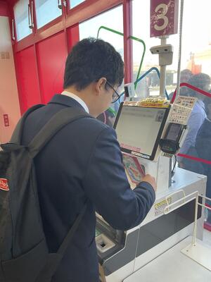 ディズニーランドでは、グループに分かれて活動をしました。昼食では、事前に決めたハンバーガーやピザなどを食べました。普段とは違うお店の雰囲気やレジのシステムでしたが、生徒たちは落ち着いて自分で決めた食べ物を頼むことができました。