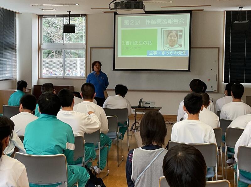 各作業班ごとに作業実習を振り返り、「頑張ったこと」「これから頑張りたいこと」などを発表しました。
