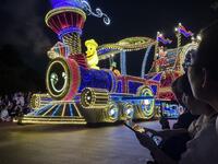 夕食後はエレクトリカルパレードをみんなで見ました。キラキラ輝くキャラクターを前にみんな笑顔で手を振っていました。