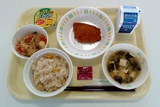 今日の栗ご飯に、交流校の矢板高校の生徒さんが一生懸命育てたもち米「きぬはなもち」を使いました。うるち米と混ぜて炊き込みました。つやがあり、ふっくらとした炊き上がりで、子どもたちにも大好評でした。