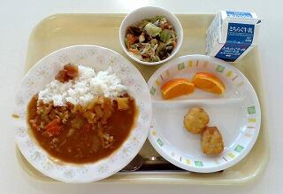 今日は運動会前日なので、応援メニューにしました。子どもたちは給食の時間にも運動会の練習を頑張っていますと毎日話してくれました。大好きなカレーを食べて元気モリモリ!本番も頑張ってください。