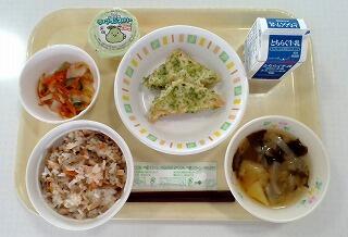 しいたけ、しめじ、舞茸と秋においしいきのこがたっぷり入ったきのこご飯は香りよく食欲をそそります。今日は、いつもより多めによそって嬉しそうに食べている人がたくさんいました。
