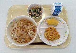 今日は久しぶりのうどんです。麺類の時は、給食開始時間にあわせて汁をかけて提供しています。11月に入り急に寒くなってきたので温かいうどんは体が温まります。子どもたちもおいしそうに食べていました。