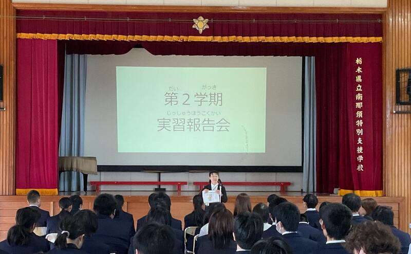 実習報告会では、それぞれの実習を振り返り、目標の達成度から自己評価をして発表しました。これからの学校生活や次の実習に向けて新たな目標につなげていってほしいと考えています。