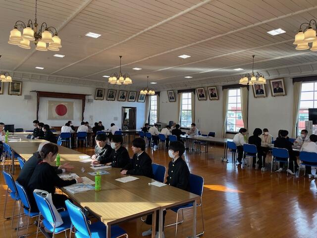 11月7日(金)1学年の「総合的な探究の時間」に市役所職員の方々をお招きして、地域課題に関するインタビューを行いました。