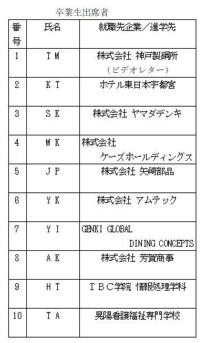 ・卒業生が社会に出て、しっかり活躍している様子が見られ、「同窓生」として嬉しく思いました。
