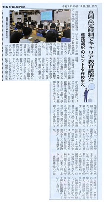 令和7年10月17日(金)発行の「もおか新聞 plus」12面に、本校の「進路キャリア教育」取材記事が掲載されましたので、お知らせいたします。
