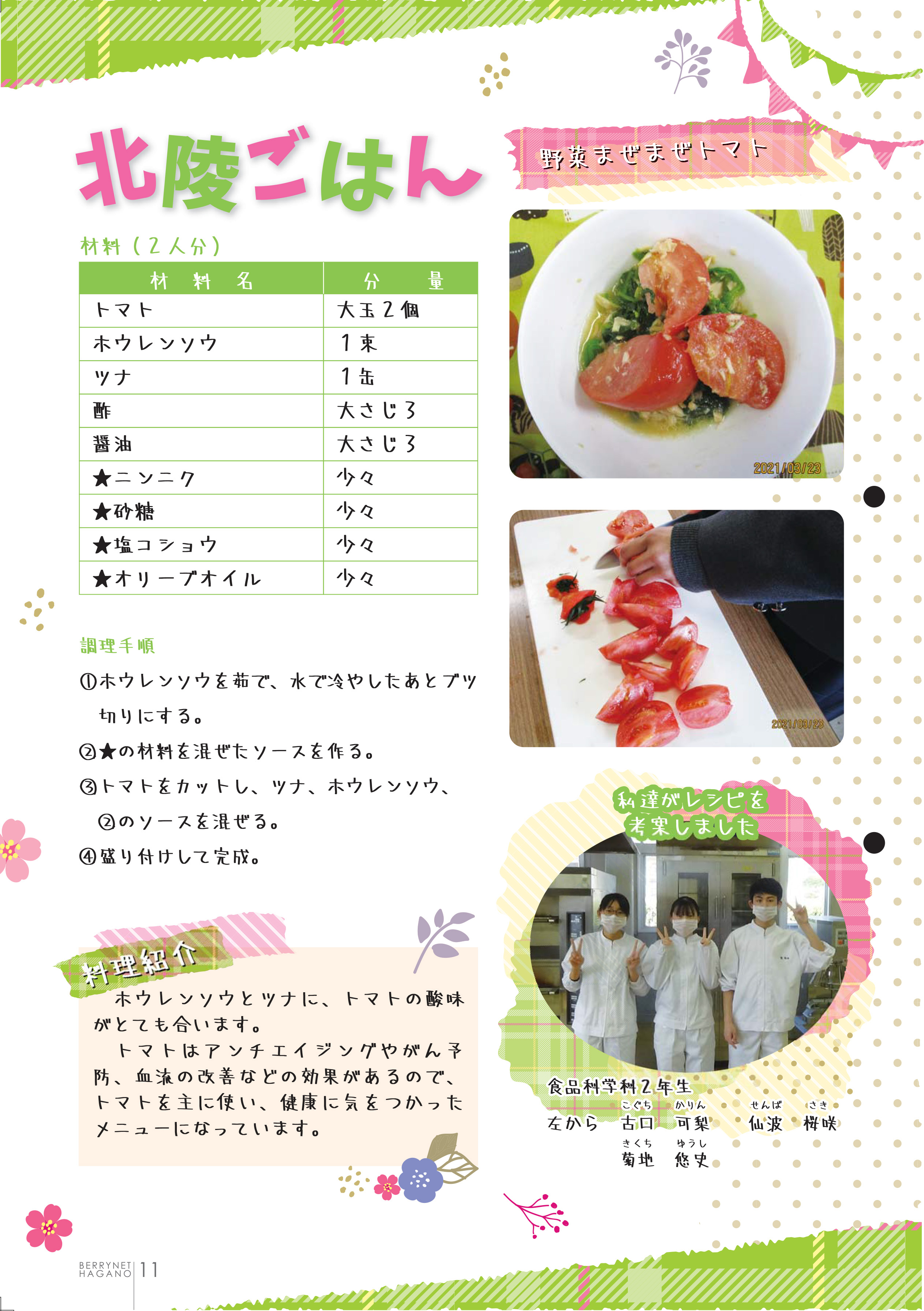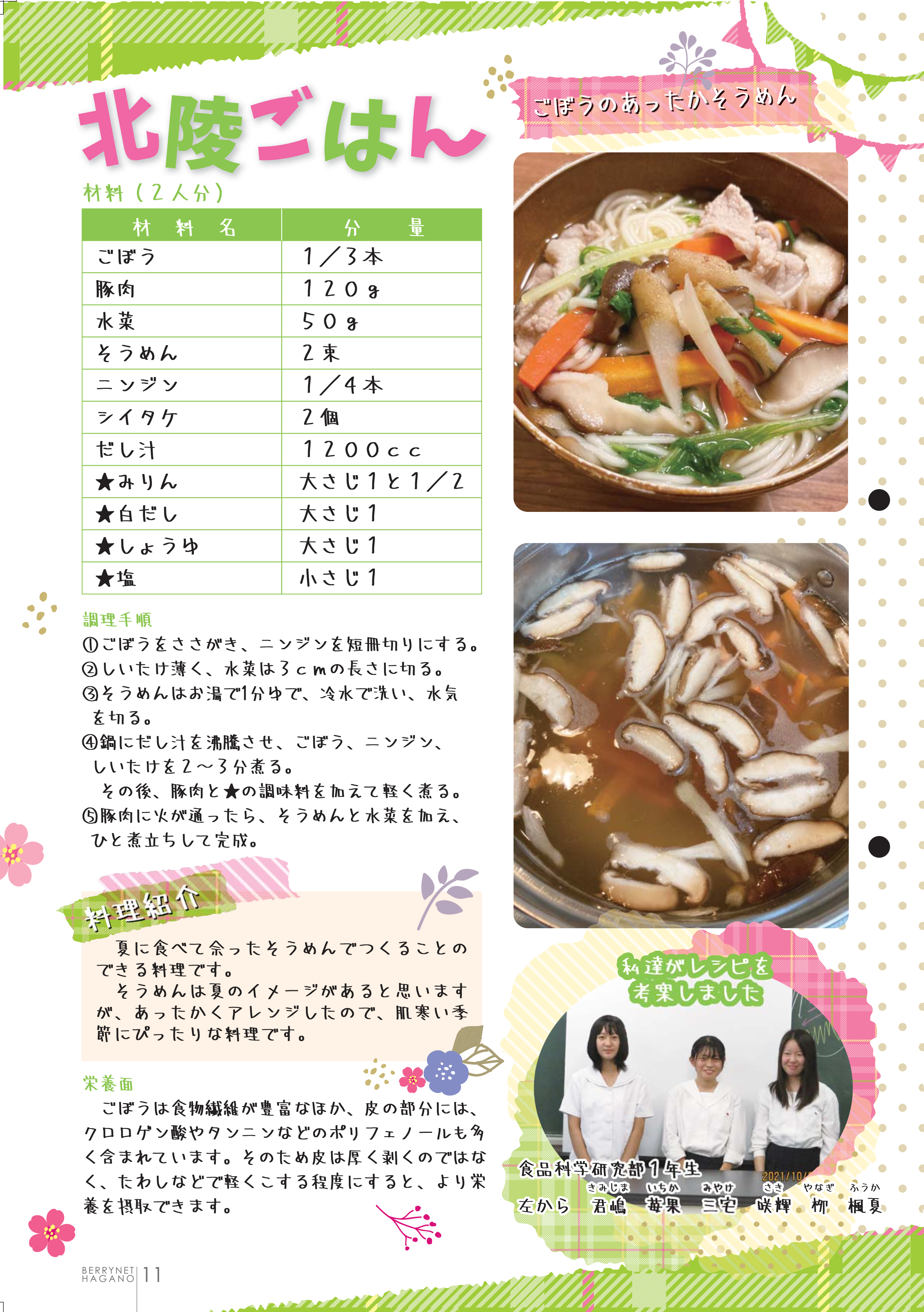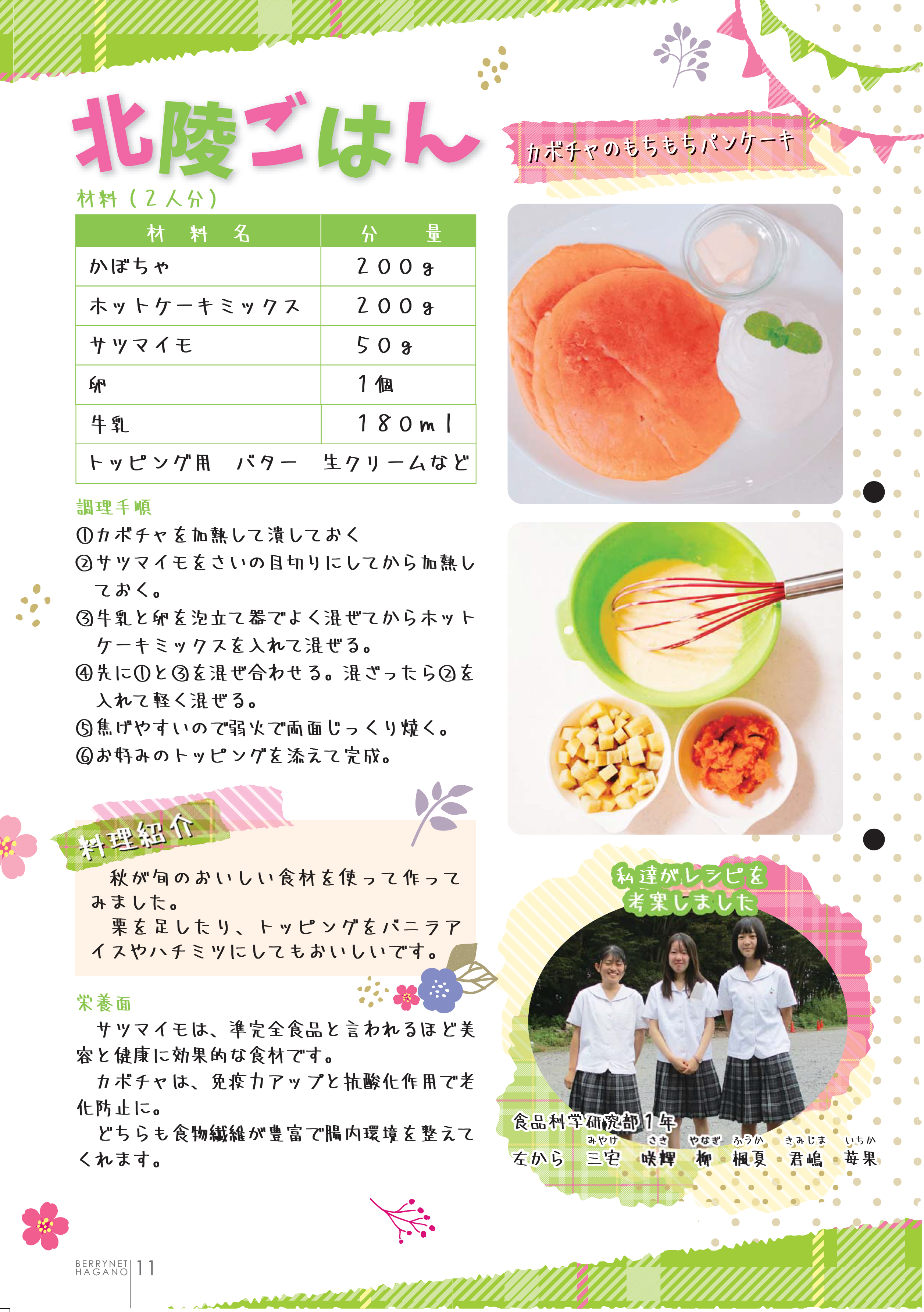 JAはがの 機関誌 「ベリーネットはがの」に定期掲載いただいています北陵ごはんのアーカイブです。
