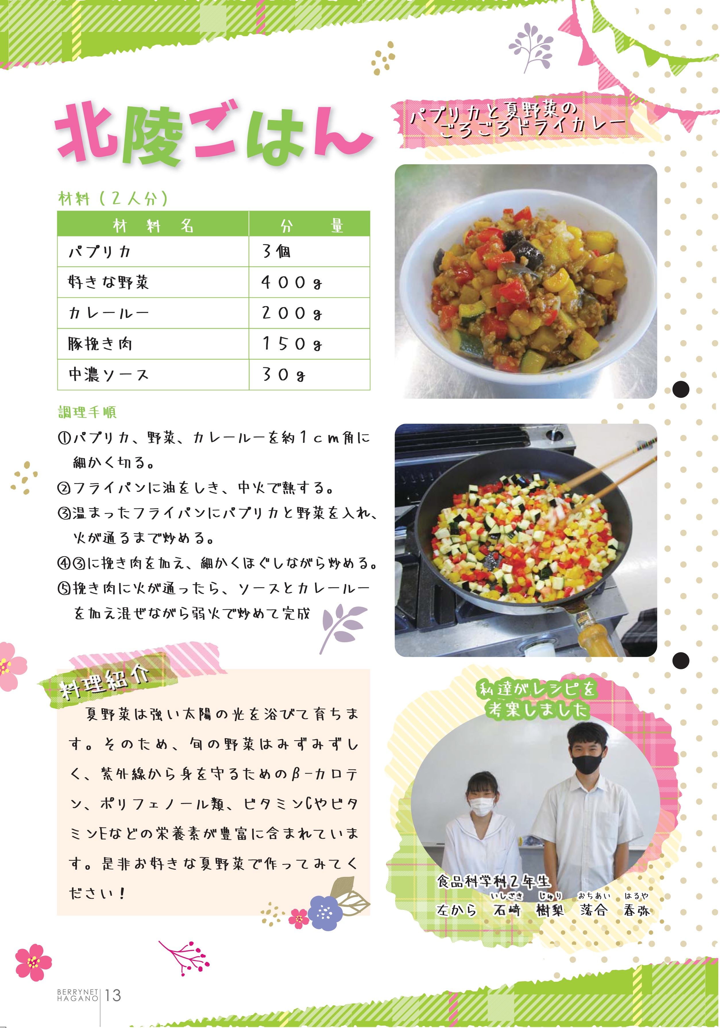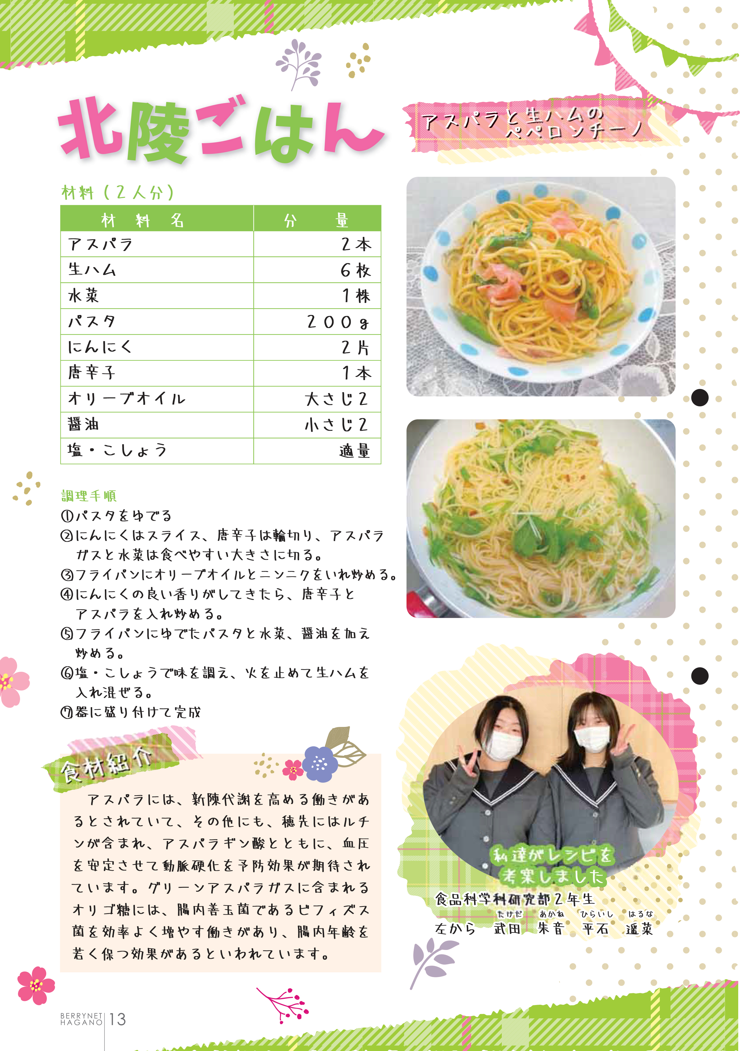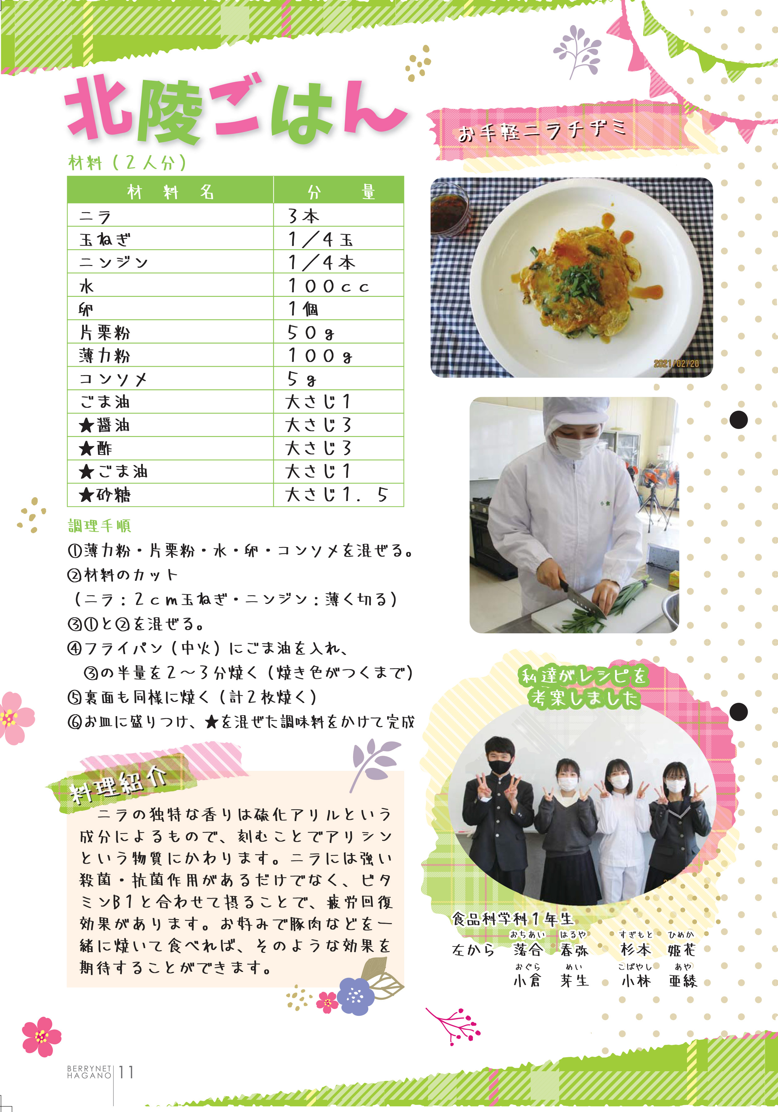 JAはがの 機関誌 「ベリーネットはがの」に定期掲載いただいています北陵ごはんのアーカイブです。