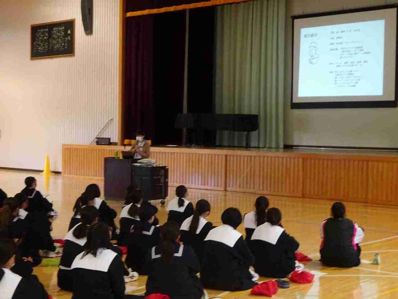 全体会の後、在校生との交流会を行い、在校生が真岡女子高校での学習や学校行事、部活動など楽しい学校生活について話してくれました。