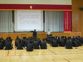 令和7年11月11日(火)、体育館で3年生最後の進路ガイダンスを行いました。チェルコミュニケーションズブリッジの古澤かおる先生より社会人の準備として、心構えや挨拶、敬語、身だしなみなどのご指導をいただきました。