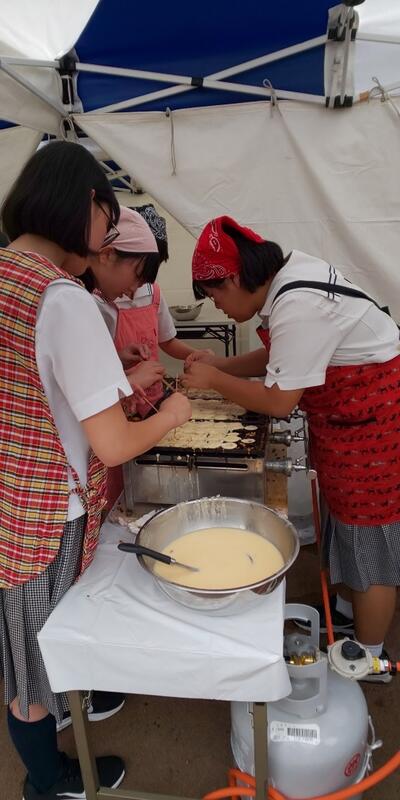 本校の参加は2年目で、今年は2年生女子7名の希望者で「こめこぼーる」を販売しました。