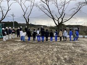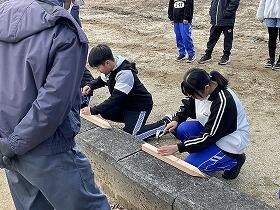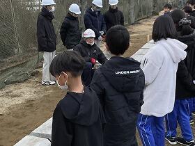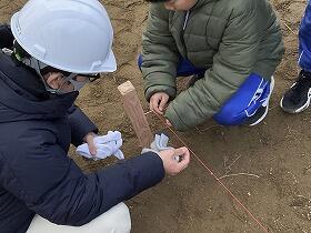 (株)大岩建設の技術者の指導を受けながら、羽田小学校4~6年生と本校生で作業を実施しました。