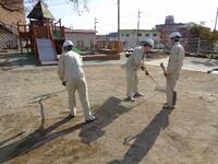 大岩建設 様の重機が入り園庭全体の砂を回収しました