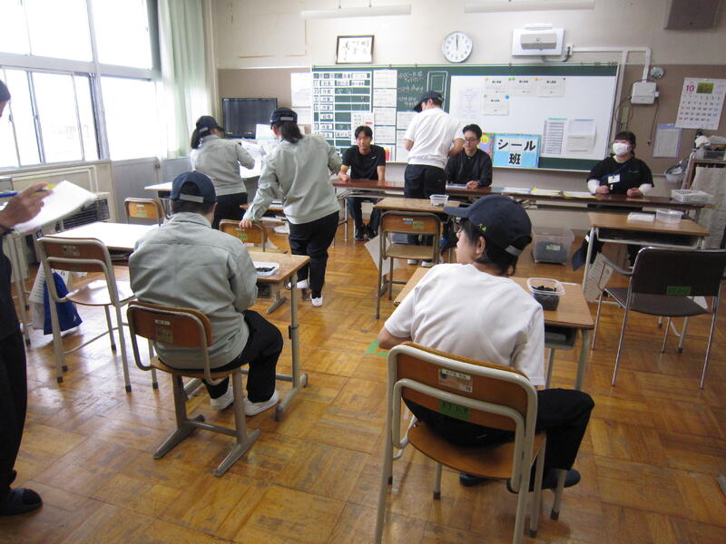 組立班は「姿勢をよくして集中する」「先生に挨拶をする」、シール班は「丁寧に作業に取り組む」、生活分別班は「自分のペースで取り組む」という目標を立て、それぞれの役割を果たしています。