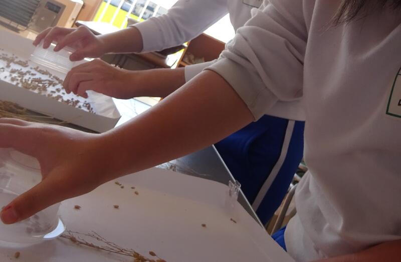 バケツ稲の【脱穀・もみすり・精米】を行いました。