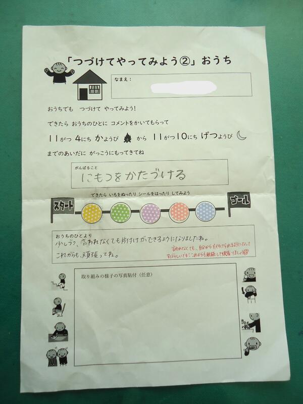 小学部では、さらに継続して、夏休み後の学校での実践を家庭に知らせ、10月10日からの約1か月間、各家庭で実践してもらいました
