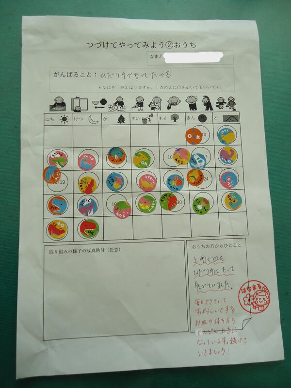 ひだりてでもってたべる、がんばっています(ホームワーク週間その後・家庭との連携㉕)
