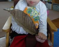 始めは、大きな落ち葉をよく見て、握って、叩いて。。。色々観察