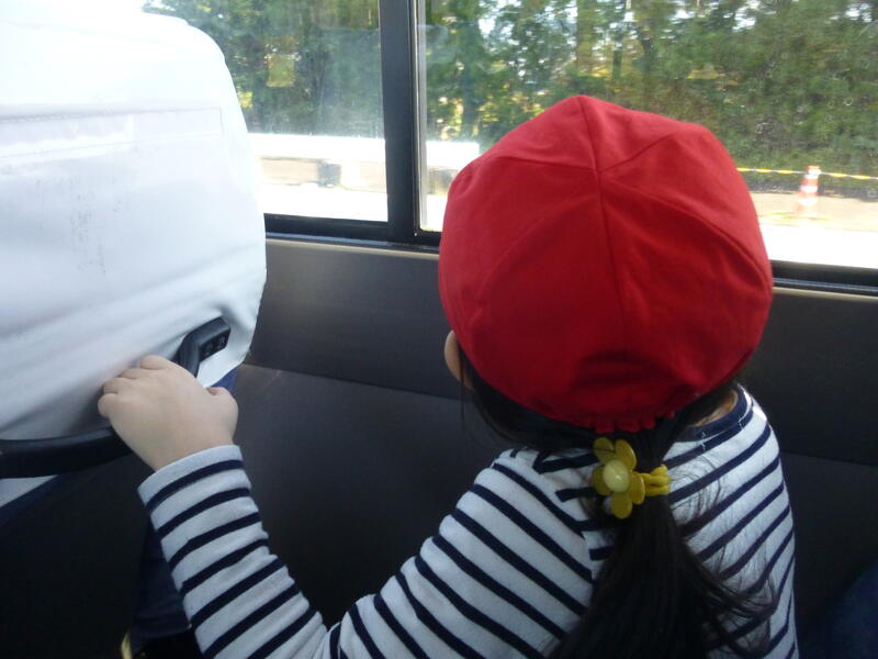 早速バスに乗って出発!みんな初めてのお出掛けにワクワクが止まりません