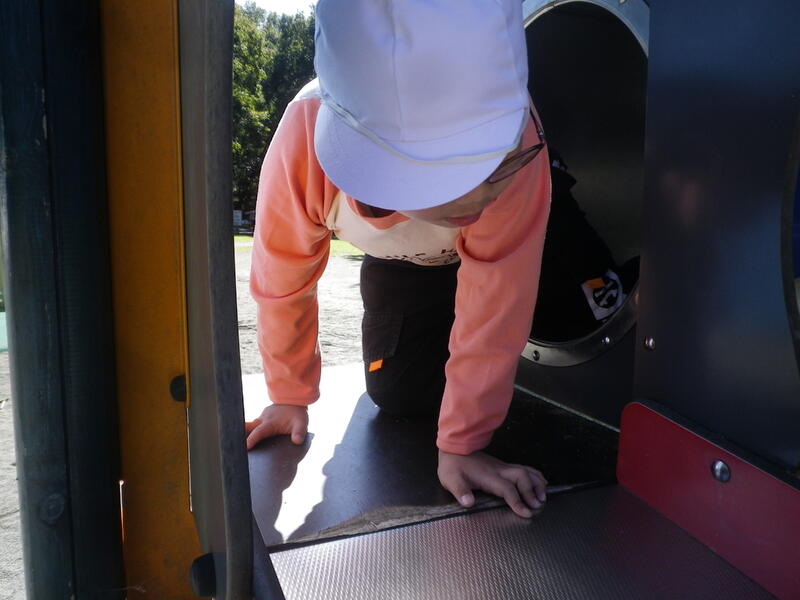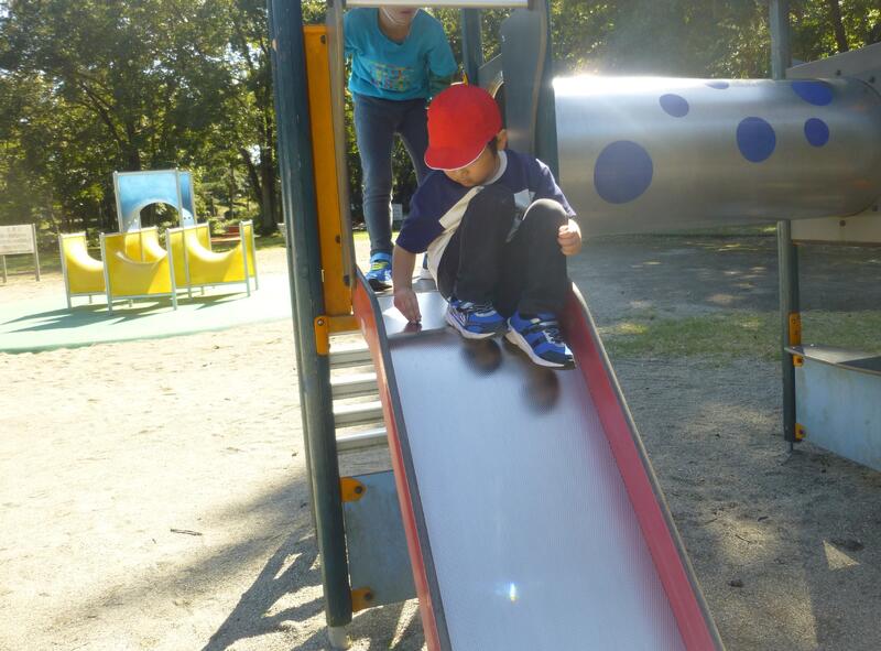 やはり学校でも人気のある滑り台は、列ができるほどの人気でした。バスの中で確認したお約束「順番を守る」をしっかり守って、仲良く遊べています