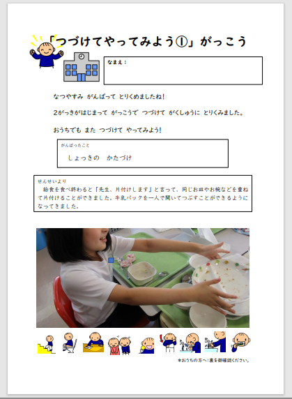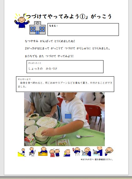 現在夏休み後の学校での取り組みを家庭にお知らせし、家庭で取り組んでいただいている期間になります
