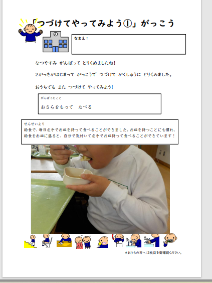 現在夏休み後の学校での取り組みを家庭にお知らせし、家庭で取り組んでいただいている期間になります