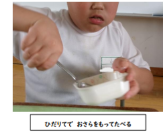おさらをもってたべる、がんばっています(ホームワーク週間その後・家庭との連携⑥)