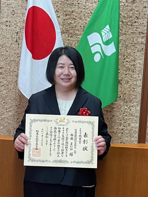 本日、 市橋まいは 教諭が とちぎ教育賞を受賞しました。