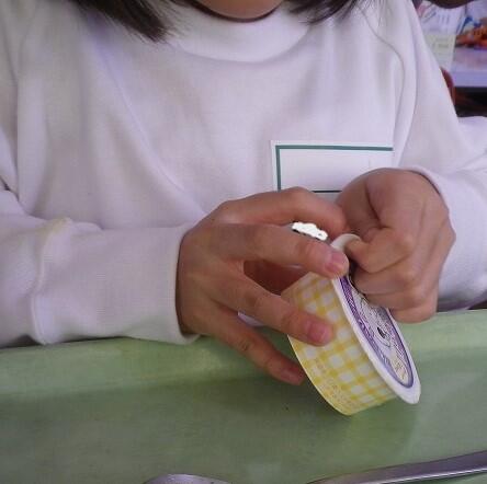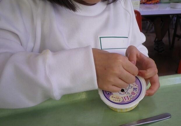 「ほら、(ブルーベリーのふたの)くまちゃんがまってるよがんばれ