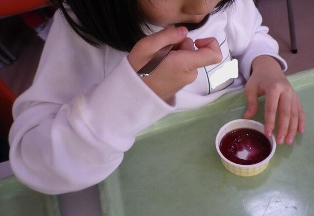 と先生とお話しし、ゼリーを最後に食べるのを楽しみにしていました